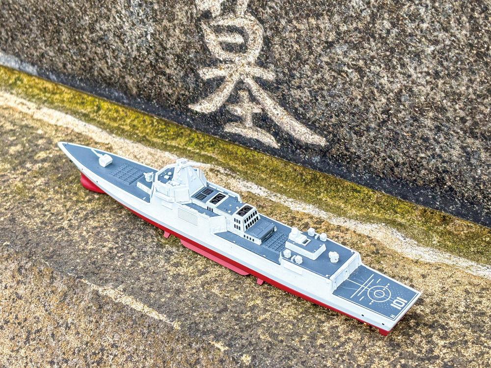 北洋海军水兵墓前摆放的军舰模型。吴黎明摄