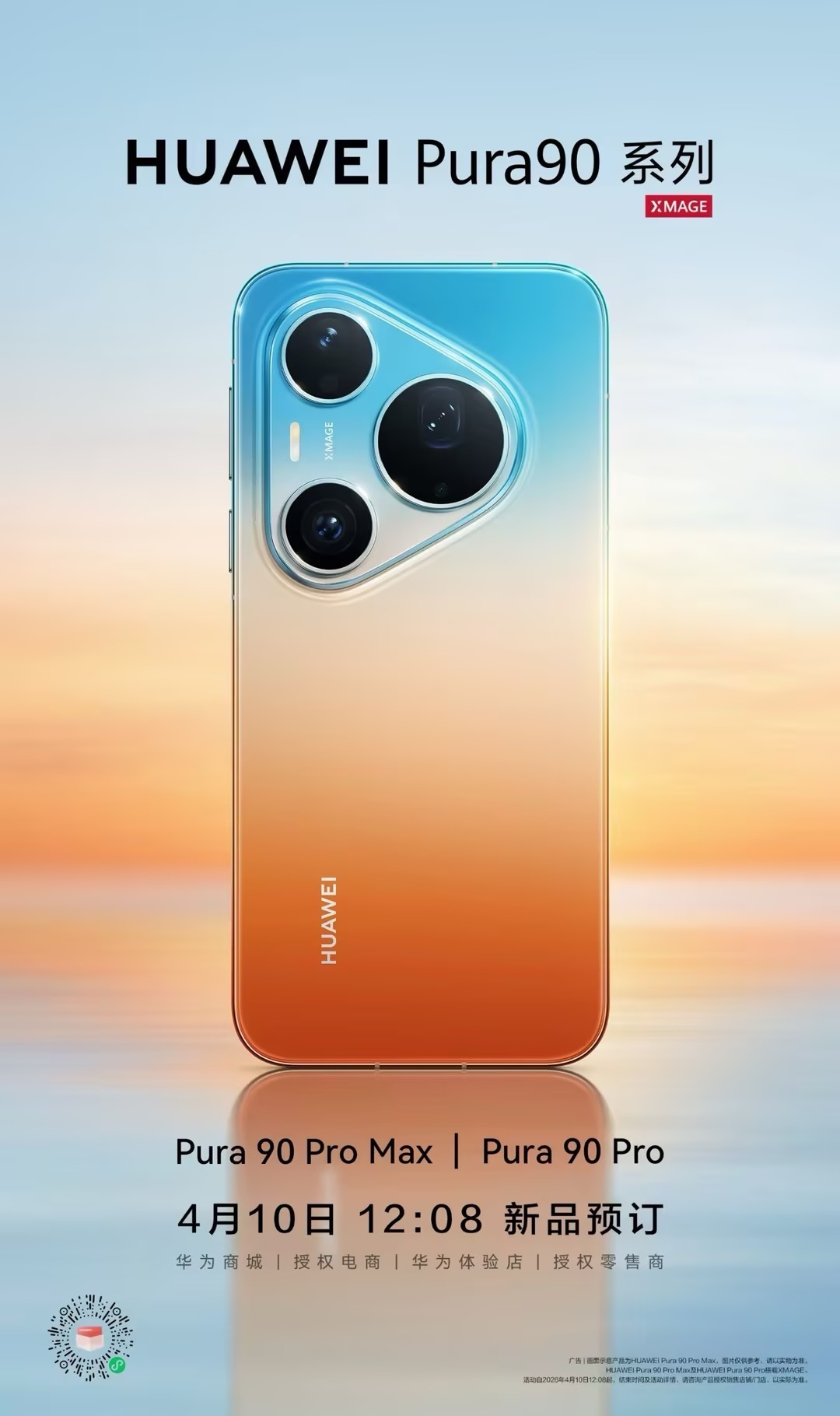 4月10日消息,华为官方正式公布Pura 90 Pro与Pura 90 Pro Max两款机型的全系配色,同时该系列机型已上架华为商城,于当日12:08开启预订,发布会定档4月20日。