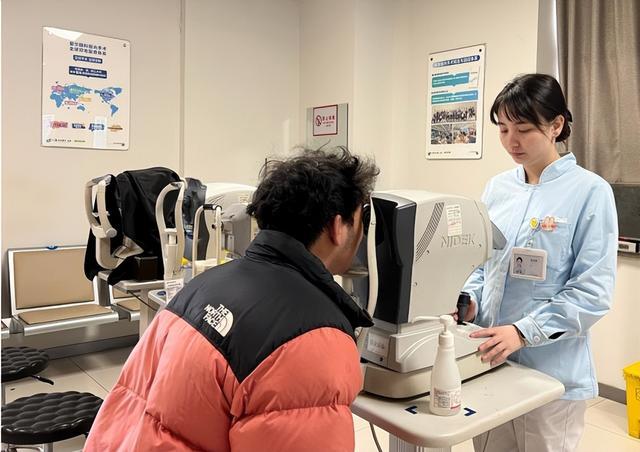 (▲袁同学全光塑手术术后护士进行眼压检查)
