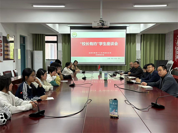 为进一步贴近毕业班学生实际需求,营造安心、舒心、积极向上的备考环境,4月10日下午,合肥市第四十八中学肥东分校在行政楼二楼会议室组织召开了本学期“校长有约”九年级学生座谈会。会议由校党支部书记、校长杨威主持,分管副校长汪元渊、浦创奇,后勤处、德育处负责人、年级部负责人共同参与,与来自九年级各班级的学生代表面对面交流,围绕学习备考、食堂就餐、心理健康、体育训练、宿舍管理、班级建设等方面倾听学生心声,收集实际问题,并现场协调解决路径,切实为毕业生冲刺阶段保驾护航。