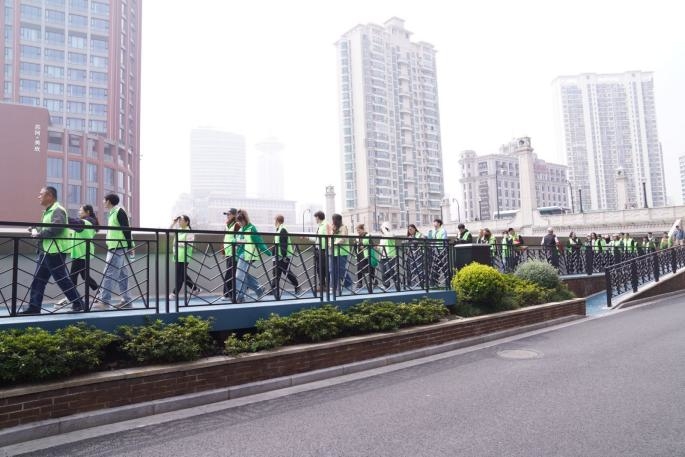 继续前行,社工们依次走过乍浦路桥与外白渡桥。乍浦路桥作为苏州河口重要节点,周边历史建筑林立,尽显复古风情;外白渡桥是中国第一座全钢结构铆接桥梁,见证近代上海百年风云,是上海城市发展的“活化石”。大家缓步穿梭于两座桥梁之间,打卡经典景致,感受老上海风情与现代都市韵味的交融,全程沉浸在文脉与风光交织的漫步体验中。