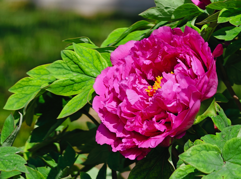 这些促培牡丹花型饱满,花色艳丽,涵盖近20个品种,包括“富贵满堂”“卷叶红”“蓝月亮”“迎日红”等。其中,传统名品“乌龙捧盛”与“紫二乔”,以及备受游客喜爱的“绿幕隐玉”,均位列其中。
