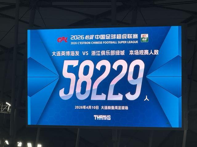 中超第5轮,大连英博主场3-0完胜浙江队,本场比赛共有58229人来到现场观战。据德转管理员朱艺 统计,本场观众人数排名中超历史第19,在今年所有中国足球比赛中暂列第3位。