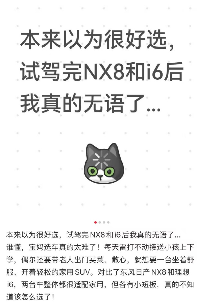 近日有车圈博主曝光,全网出现大量模板化水军通稿,标题统一为《试驾NX8和i6后,我彻底无语了…》,内容吹捧NX8、拉踩理想i6,话术雷同,疑似有组织恶意营销。