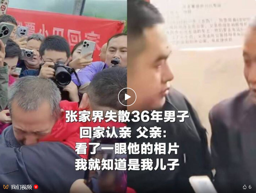 据新京报,4月11日,湖南张家界失散36年的覃小田返回家乡与亲人团聚。