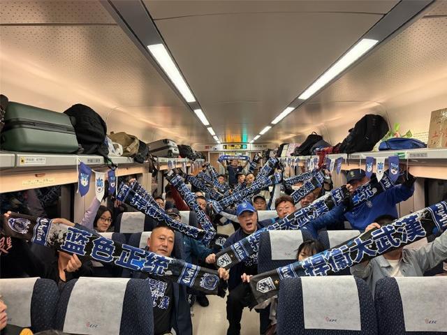 人声鼎沸,旗帜飞扬。伴着激昂的助威歌声,武汉三镇“球迷远征专列”缓缓驶出站台——数百名“第12人”身穿蓝衣,踏上奔赴重庆客场的征途。感谢中国国家铁路集团有限公司、中足联及中国铁路武汉局/成都局、武汉车站的大力支持,让本次活动顺利成行。
