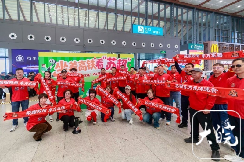 大皖新闻讯 记者从中国铁路上海局集团有限公司(简称上铁集团)获悉,4月11日,2026年江苏省城市足球联赛(简称“苏超”)首轮比赛拉开战幕。当日14时51分,400余名苏州球迷在嘹亮的助威歌声中,从苏州站搭乘G7534次列车,前往扬州客场为苏州队助威。