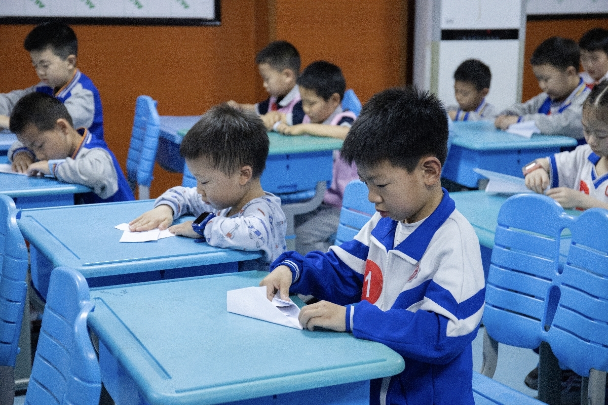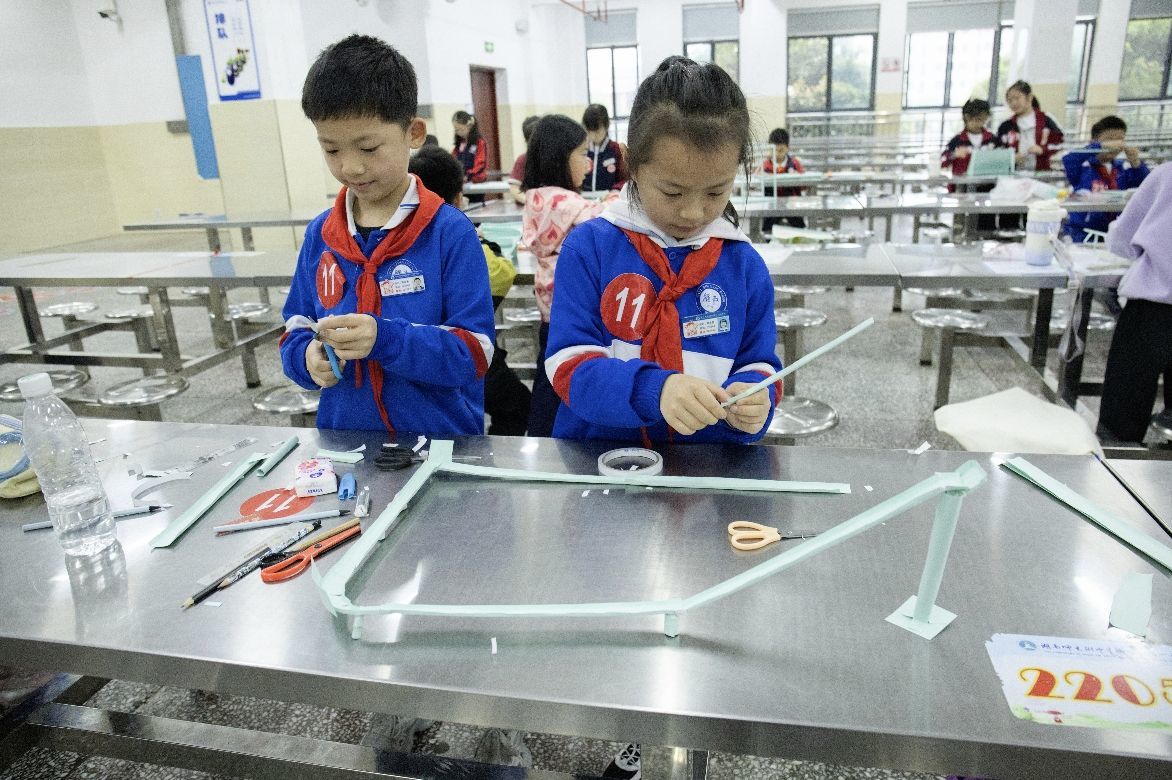4月11日,在湖南师大附中星城实验第一小学校园里,700多名小学生围绕A4纸奇思妙想,展开了一场别样竞技。这是长沙市望城区第四届“雷小锋”超炫科创展中,小学生模型普及赛六大项目创新现场。