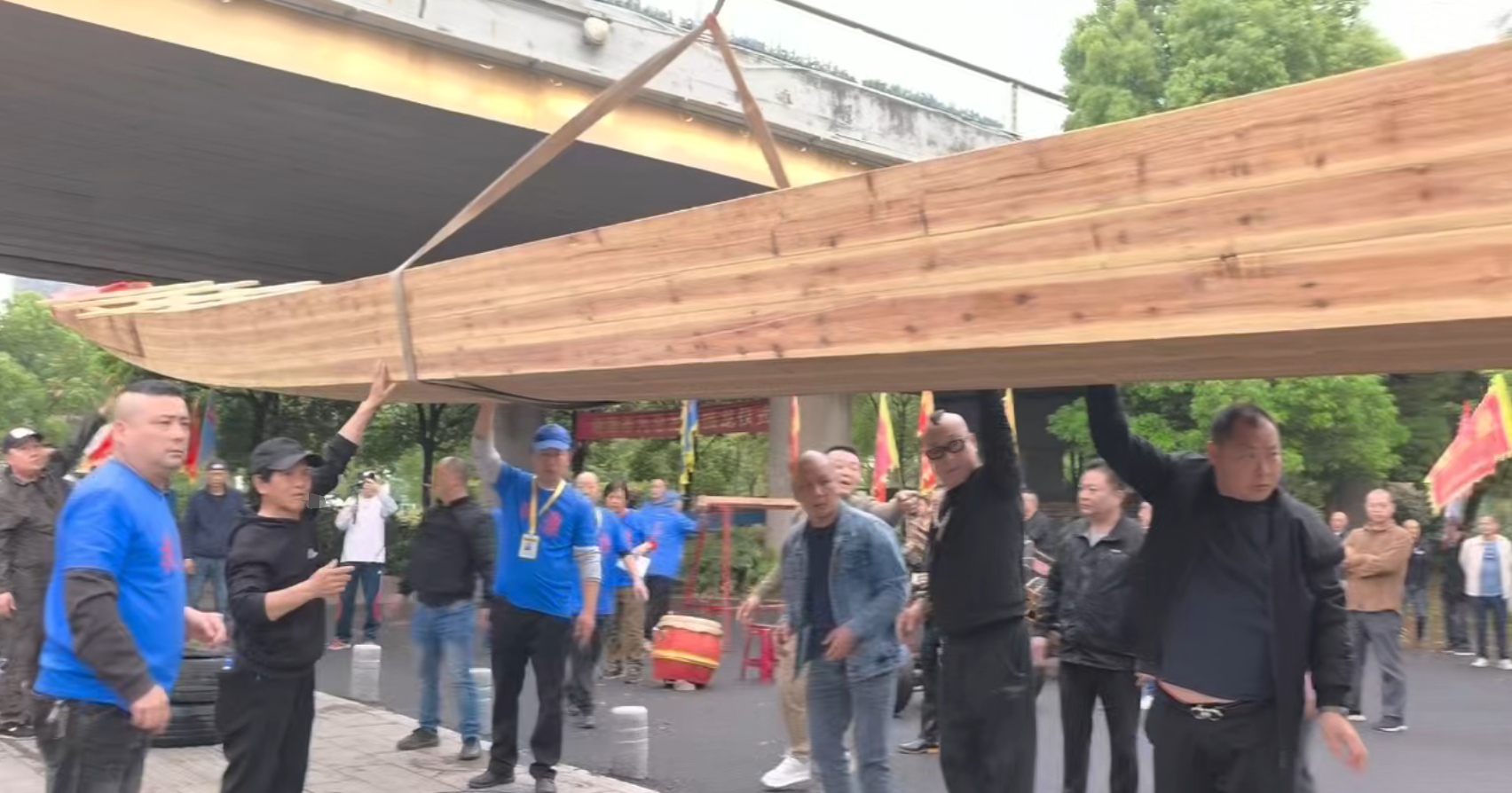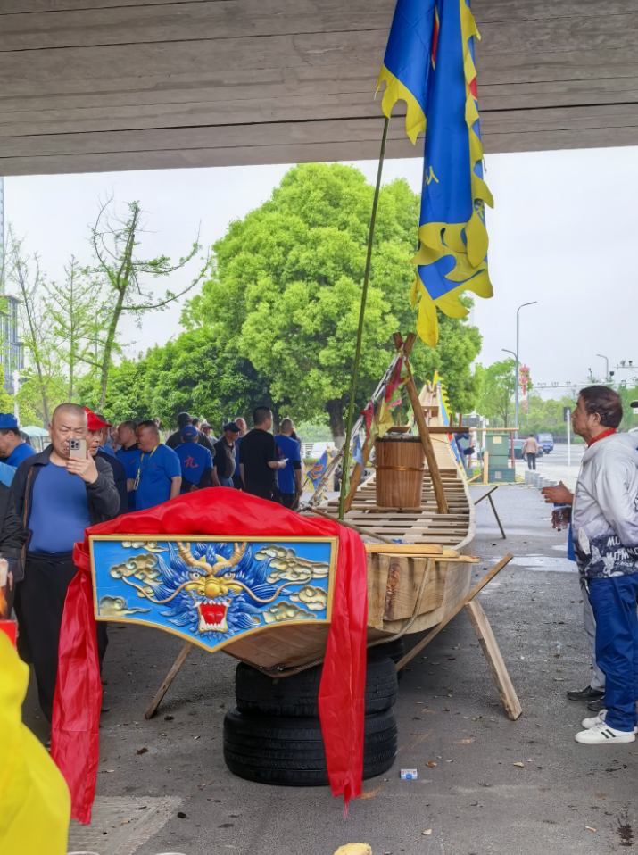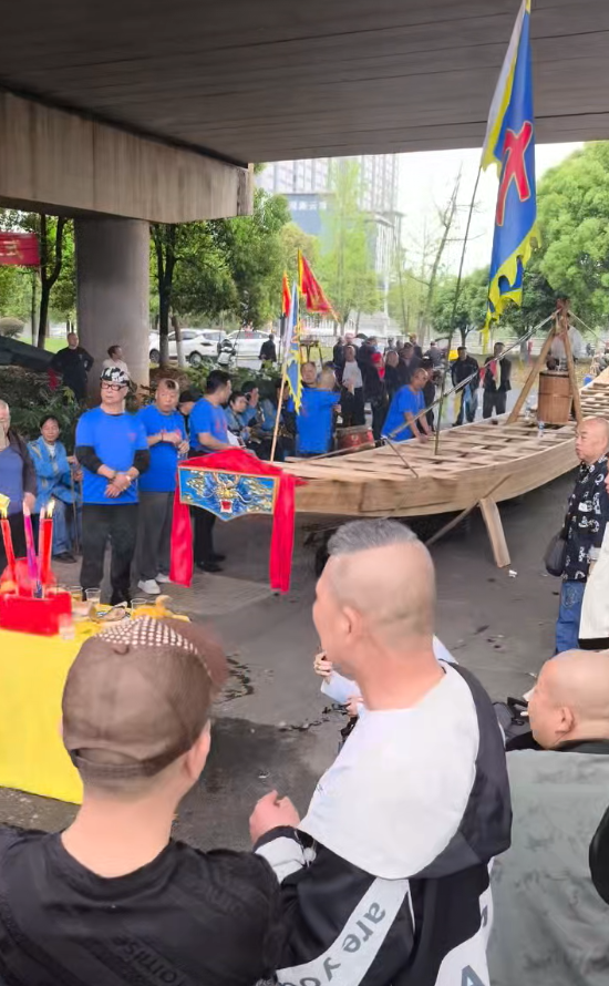 4月12日上午,一艘崭新的龙舟抵达湘潭,名为“九总扶康号”,当地举行盛大的接龙仪式。200多人到场,喜迎新龙船回家。