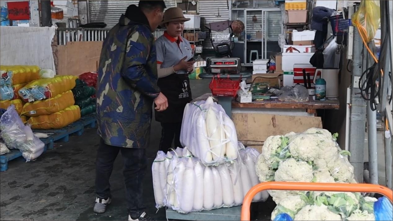 邵宝玲在菜市场买菜