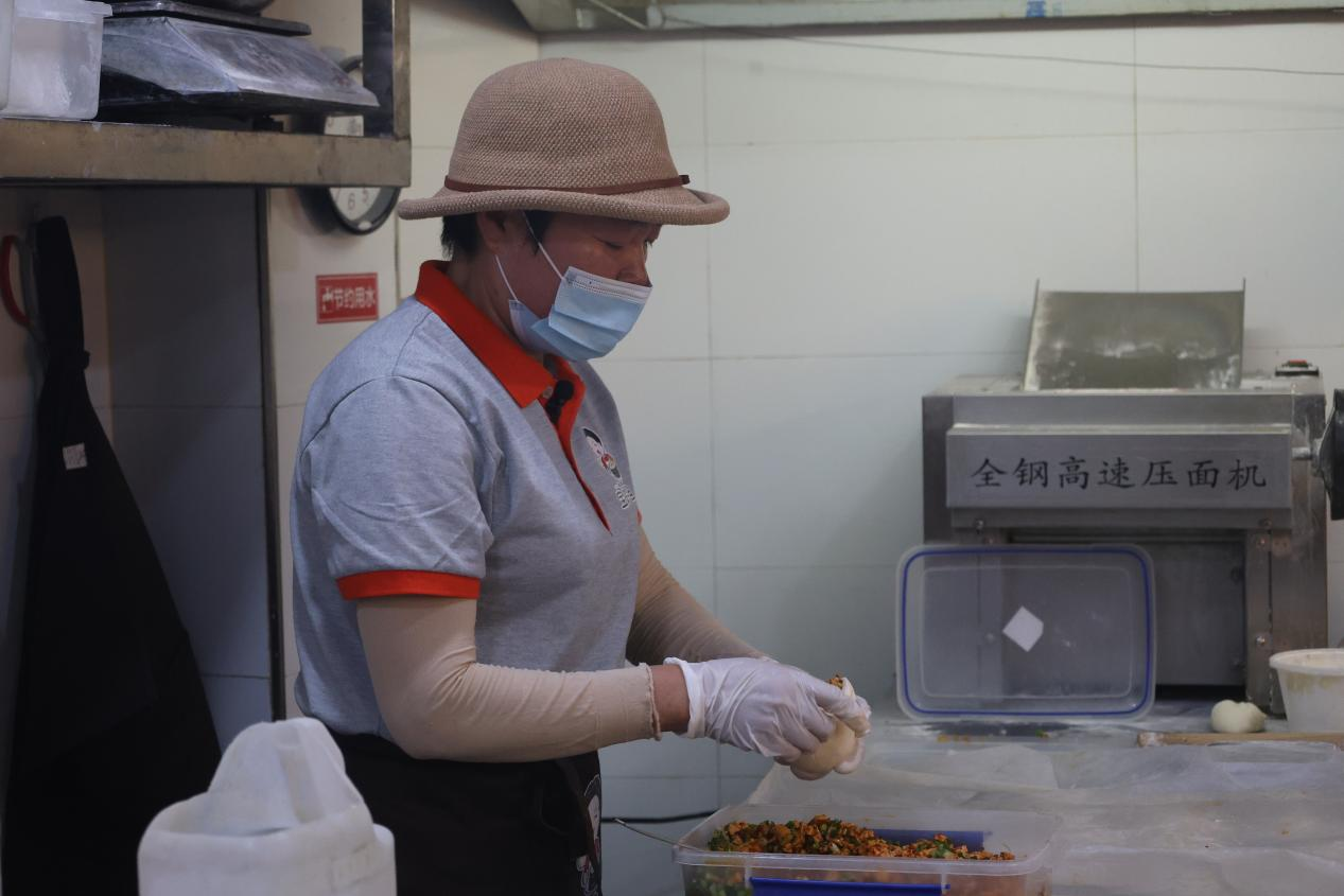 邵宝玲正在做包子