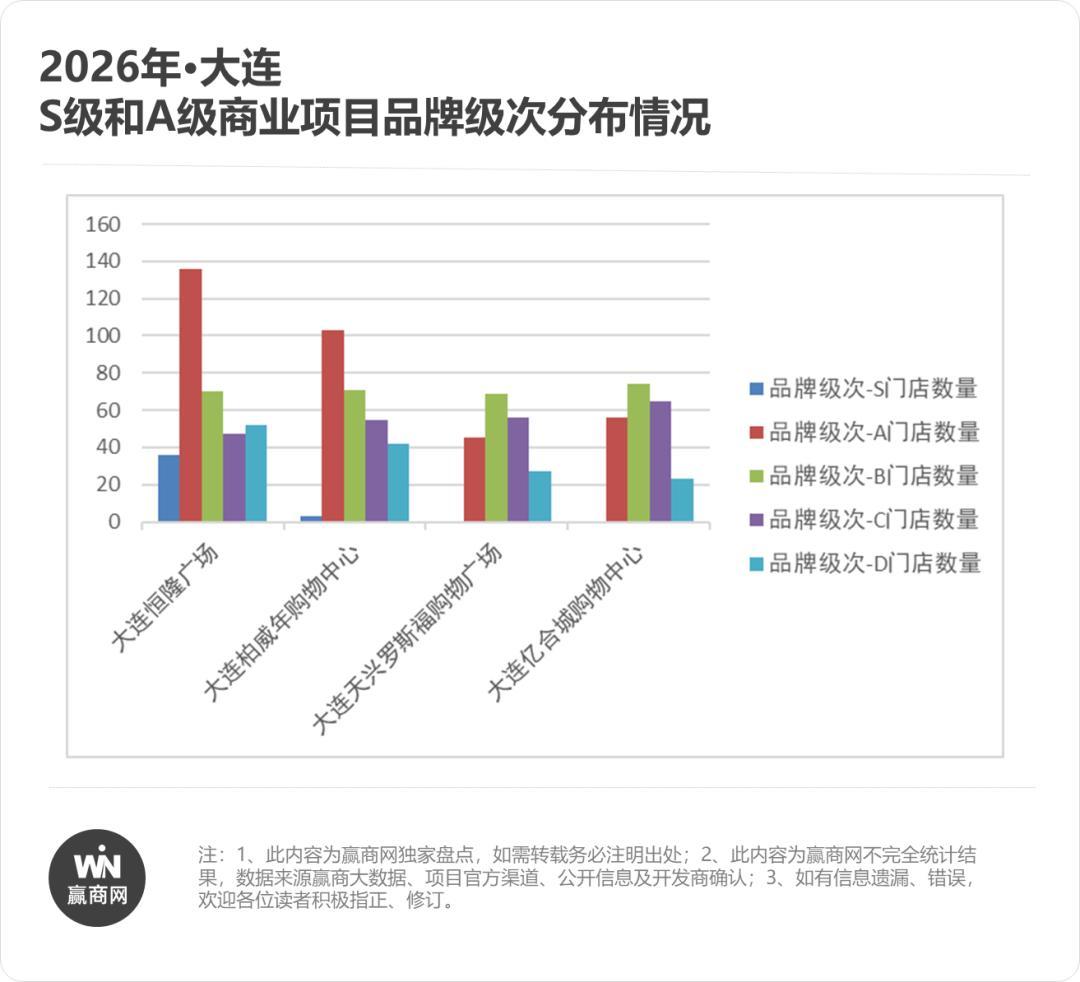 第三个特点,是市场分化加剧,头部虹吸效应显著。从项目运营级次数据看,S级运营项目仅大连恒隆广场1个;A级运营项目3个,包括柏威年、罗斯福、亿合城(华南店)。