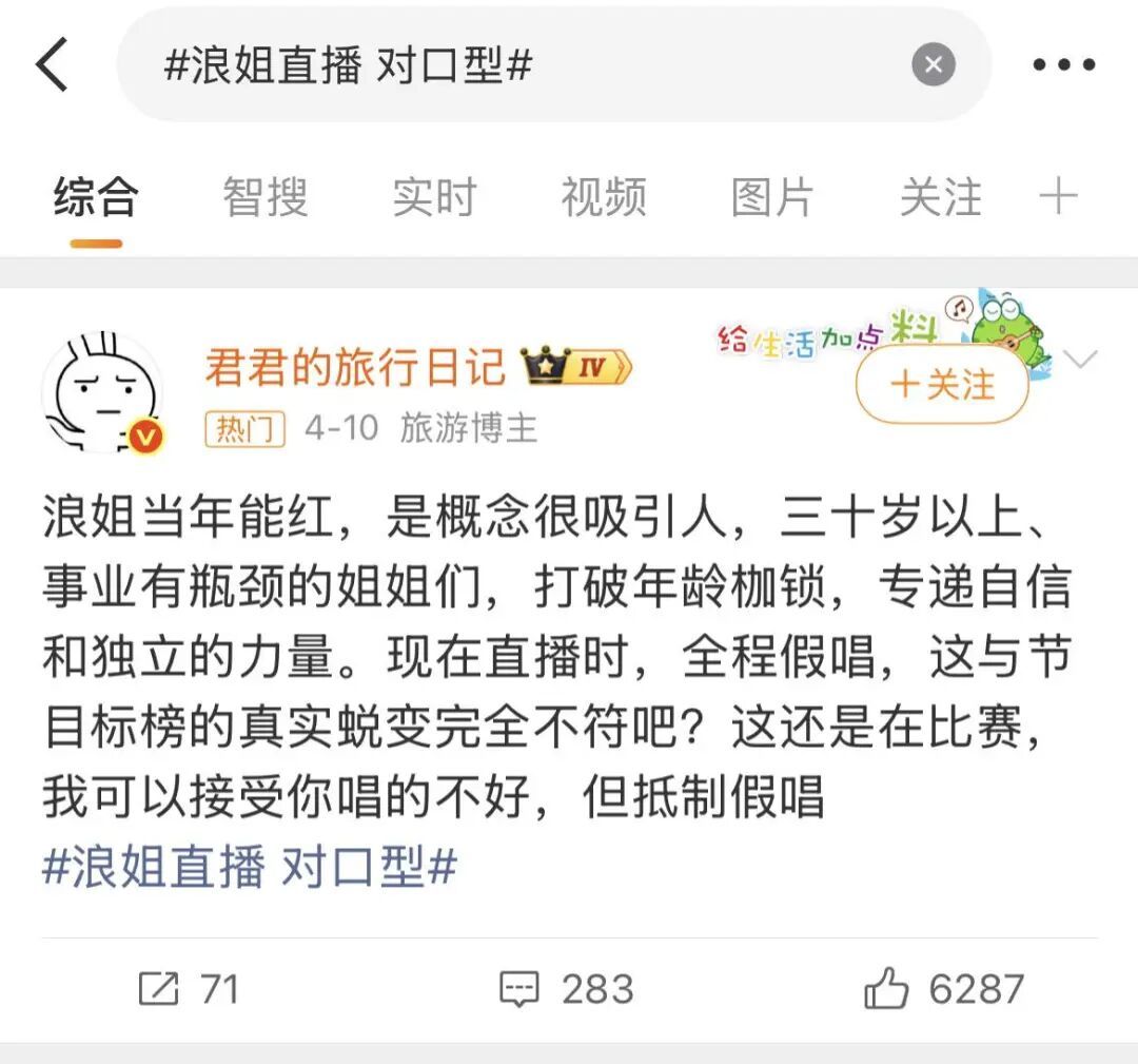 阿萱告诉娱乐资本论:“我估计浪姐导演组也是按老思路来,唱跳用预录半开麦、纯唱全开麦,没想到会引发这么大的争议。”