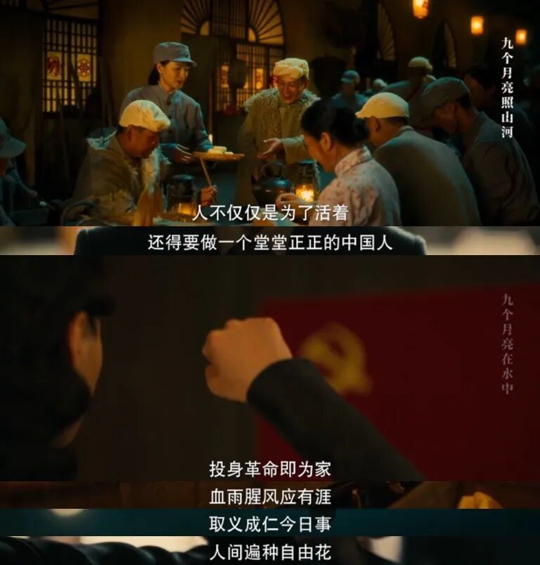 这个故事里,九个中秋串起家国命运。第一个中秋,尚在南京的丁玉娇与张汝贤在防空洞里举头望见被残垣隔得支离破碎的明月,战场上的张云魁吃着孟万福用菱角做馅的月饼,月光清冷洒在大地,更添一寸山河一寸血的悲愤苍茫。“寄月抒怀是中国人最熟悉的情感表达,一轮明月递相思、寄乡愁、盼团圆,每个中国人都能读懂阴晴圆缺的意味。”张永新说,正如荡气回肠的剧名取自岳飞《满江红》,如颜鲁公、屈原、辛弃疾等承载民族气节的历史中人一一出现在剧情中,言有尽而意无穷,“感知这些融于民族血脉的文化符号,我们与观众的审美是相通的”。