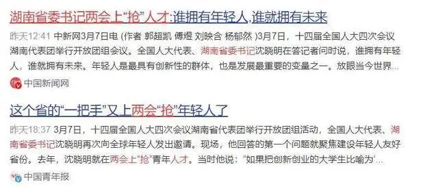 为此,去年、今年的全国两会,他都表态抢人、抢年轻人。