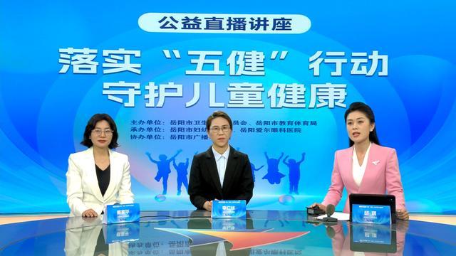 4月10日,由岳阳市卫生健康委员会、岳阳市教育体育局联合主办,岳阳市妇幼保健院、岳阳爱尔眼科医院共同承办,岳阳市广播电视台协办的“落实‘五健’行动 守护儿童健康”公益直播讲座顺利播出。