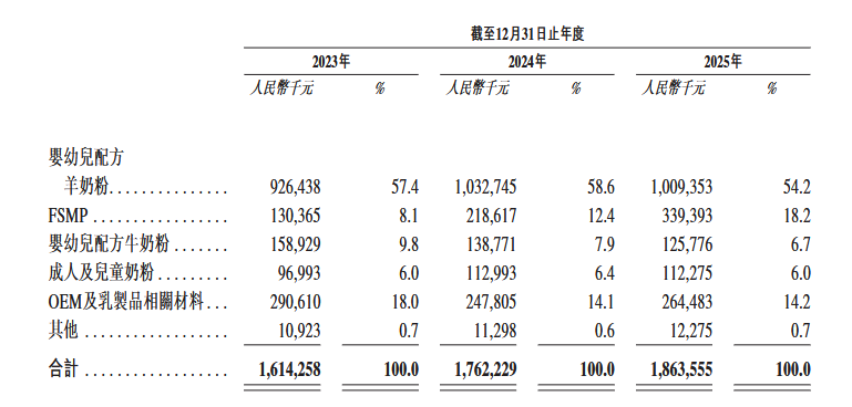 据招股书,宜品集团是一家乳制品企业,专注于羊奶粉及FSMP领域,为全年龄段消费者,特别是易过敏、乳糖不耐受或消化吸收不良人群提供高营养、易吸收、低致敏的膳食解决方案。产品矩阵涵盖婴幼儿配方羊奶粉、FSMP、婴幼儿配方牛奶粉、儿童及成人配方奶粉产品等。