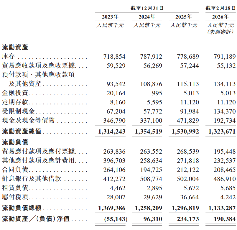 存货金额持续高企不仅侵蚀利润水平,还占用大量资金。截至2025年12月底,公司现金及等价物为4.72亿元,而短期借款已达5.02亿元,现金对短期债务的覆盖比例仅94%,存在约0.3亿元的资金缺口。