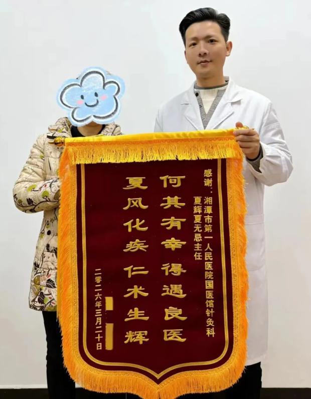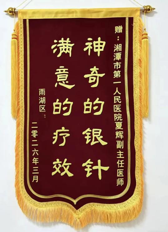 近日,湘潭市第一人民医院中医针灸门诊副主任医师夏辉,连续收到三面满载患者谢意的锦旗。