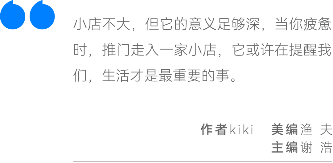回到具体的生活,我想小店弥补也是一种“附近的消失”——小店不大,但它的意义足够深,当你疲惫时,推门走入一家小店,因为它总能提醒我们,生活才是最重要的事。