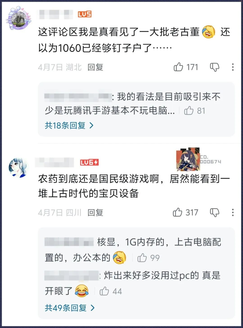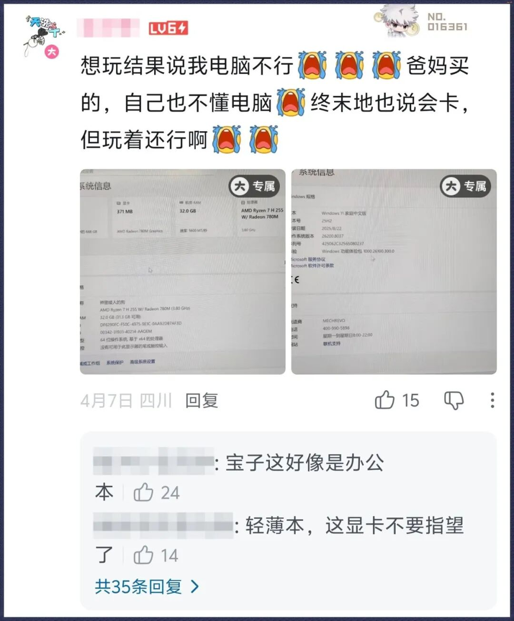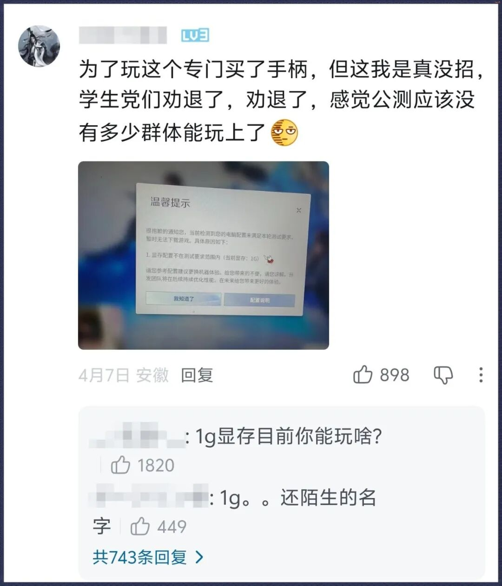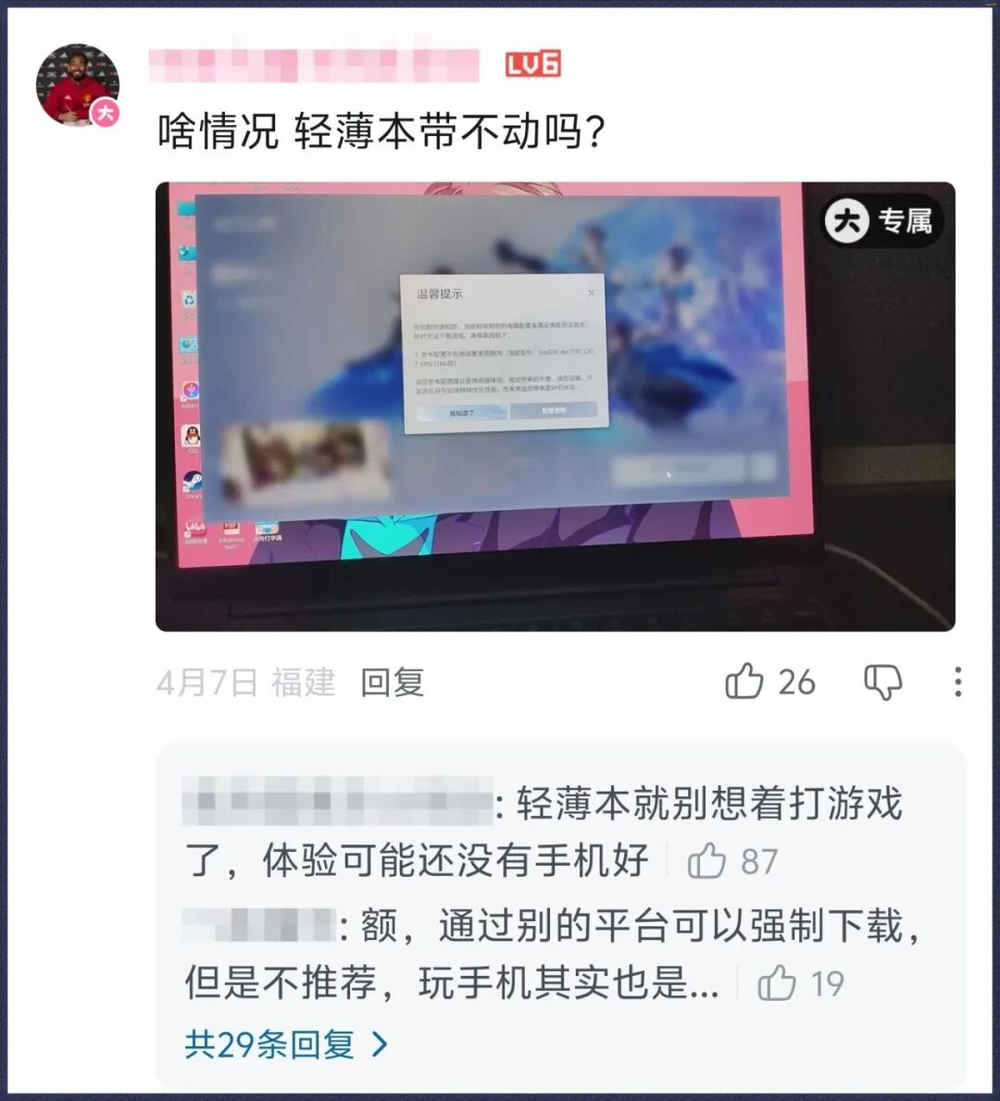 不过评论区氛围出奇友好,没有预想中的冷嘲热讽,反而都在热心解答:配置不够的就先等等移动端吧,反正手机也能玩。