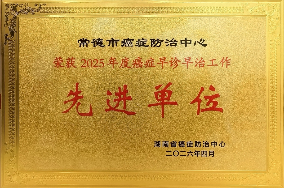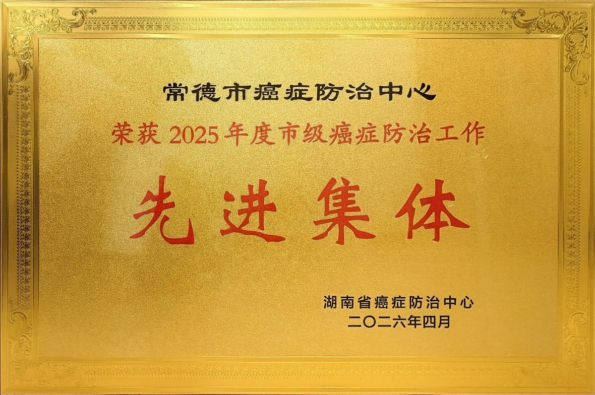 常德市癌症防治中心于2023 年 11 月正式挂牌成立,已连续两年荣获全省先进集体殊荣(每年仅评选2-3家)。本次会议上,该中心凭借肿瘤登记规范高效、早诊早治培训标准系统、癌症筛查覆盖广泛、科普宣传常态长效、防治体系建设完善等综合表现,荣获 2025年度“市级癌症防治中心先进集体” 表彰;同时,在癌症早诊早治项目实施中表现突出,荣获 2025年度“癌症早诊早治项目先进单位” 称号。
