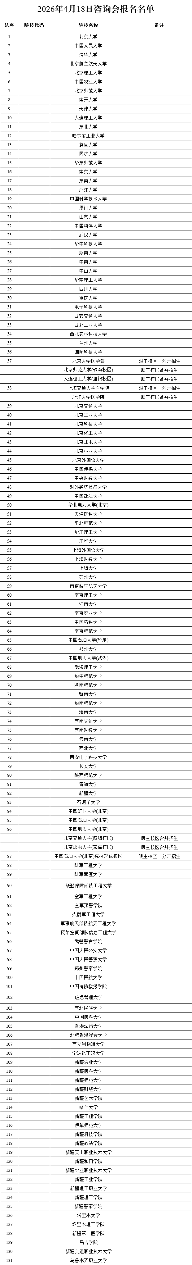 4月13日,记者从新疆教育考试院获悉,截至目前,已有全国131所疆内外高校报名参加将于4月18日举行的新疆2026年春季高校招生政策宣传咨询会。