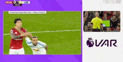 利桑德罗-马丁内斯在一次对抗当中伸手拽了利兹联前锋卡尔弗特-勒温的头发,主裁判保罗-蒂尔尼在VAR的提醒下观看了回放,并最终决定向利桑德罗-马丁内斯出示红牌。