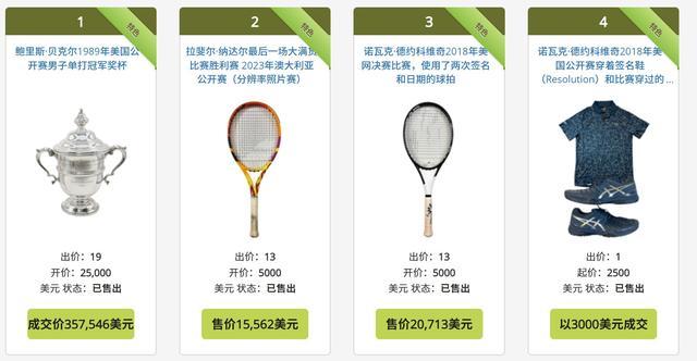 该奖杯近日在The Tennis Auction拍卖行以35.7万美元成交,创下网球奖杯拍卖价格的历史最高纪录。这是有史以来第二昂贵的网球纪念品,仅次于德约科维奇2012年澳网夺冠时使用的球拍,该球拍于今年二月以54万美元拍出。