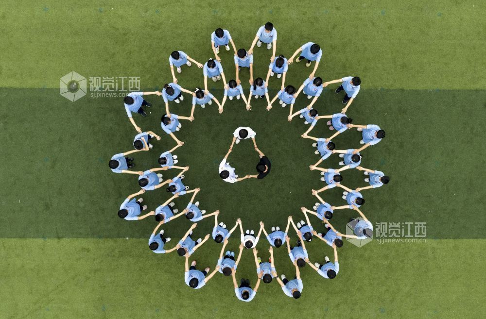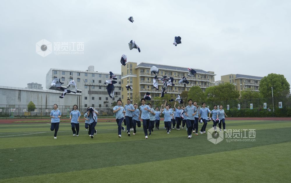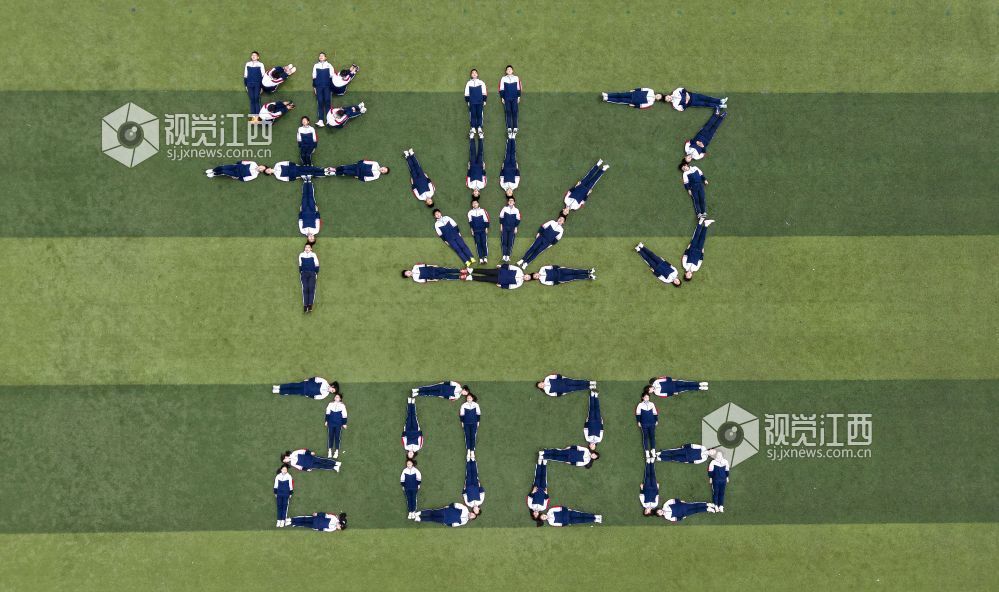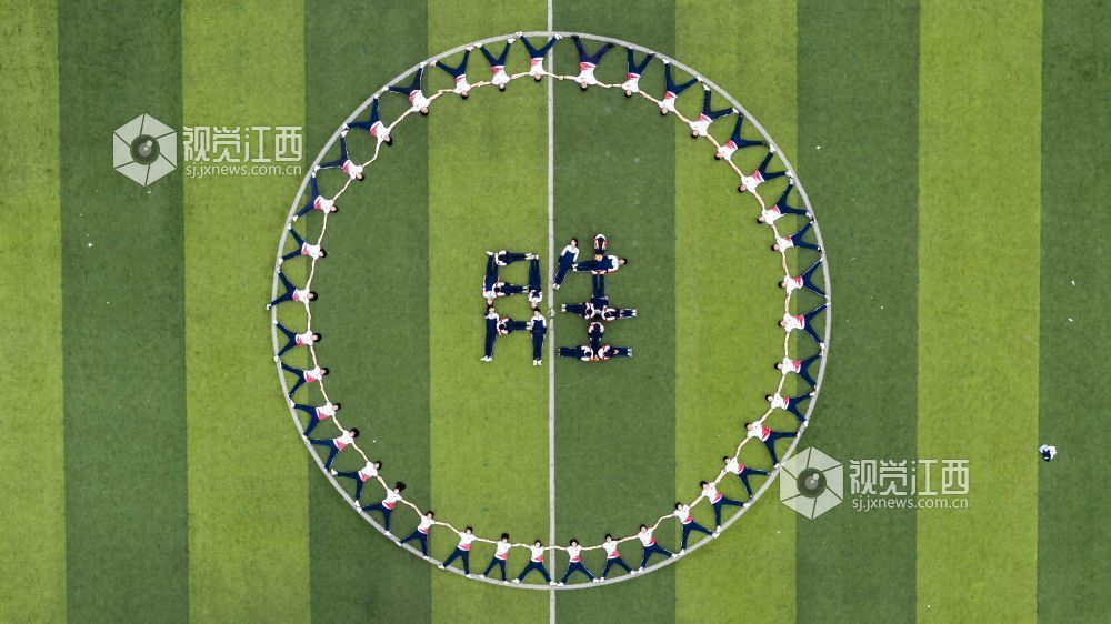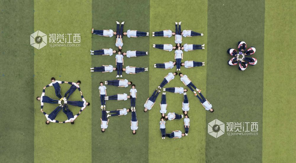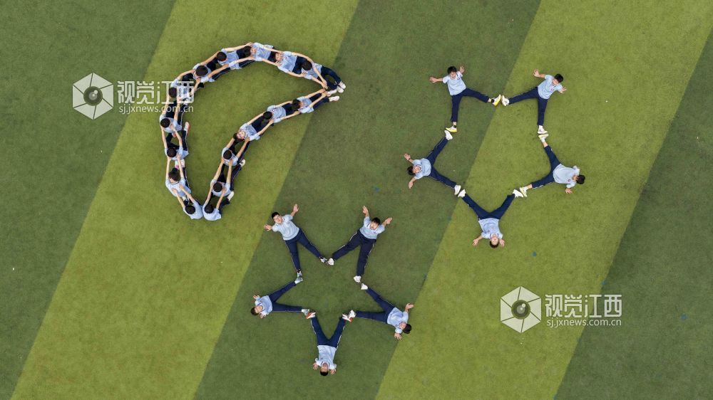 2026年4月10日,江西省瑞昌市第六中学毕业班学生在运动场拍摄创意毕业照,定格精彩瞬间。身着不同校服的他们摆出各类图案,寓意中考顺利,向中学时光告别。