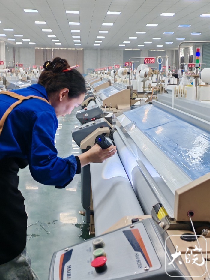 大皖新闻讯 现代化的生产车间里自动化程度很高,很难看到忙碌的工人。4月14日,“牢记嘱托开新局 日新江淮往前赶”采访团在位于定远县张桥轻纺产业园区的安徽恒优纺织有限公司采访了解到,该公司年产服装面料8000万米。