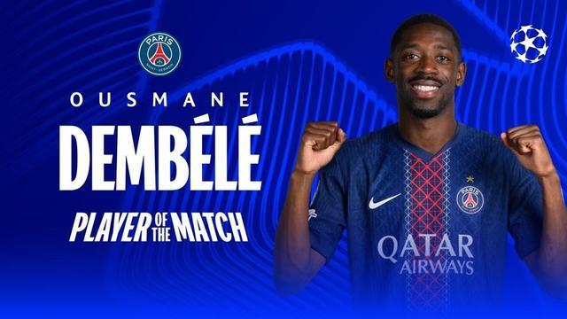 最终经过评选,登贝莱当选欧冠官方全场最佳球员。