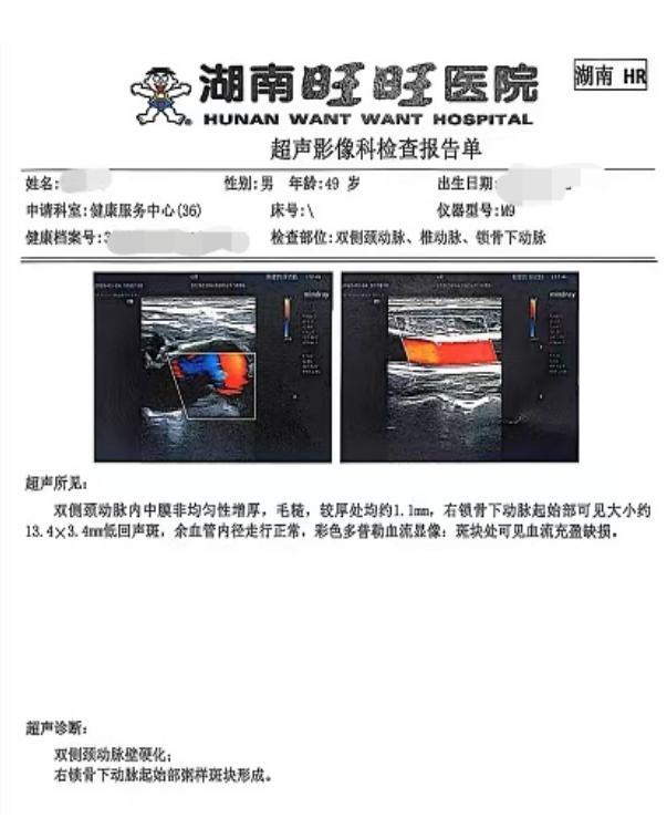 ▲颈动脉彩超示:双侧颈动脉壁硬化