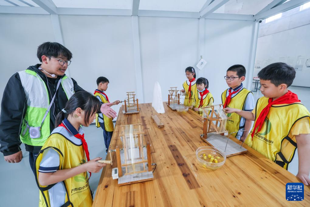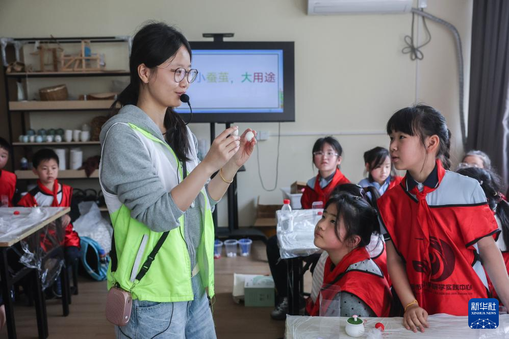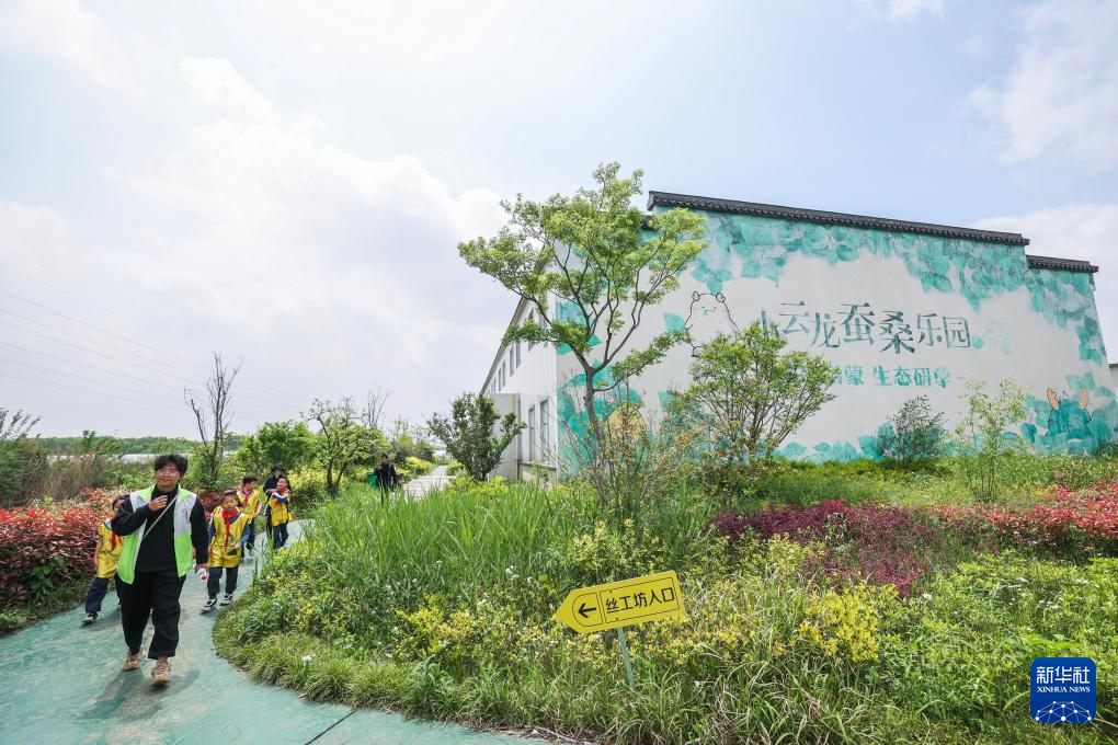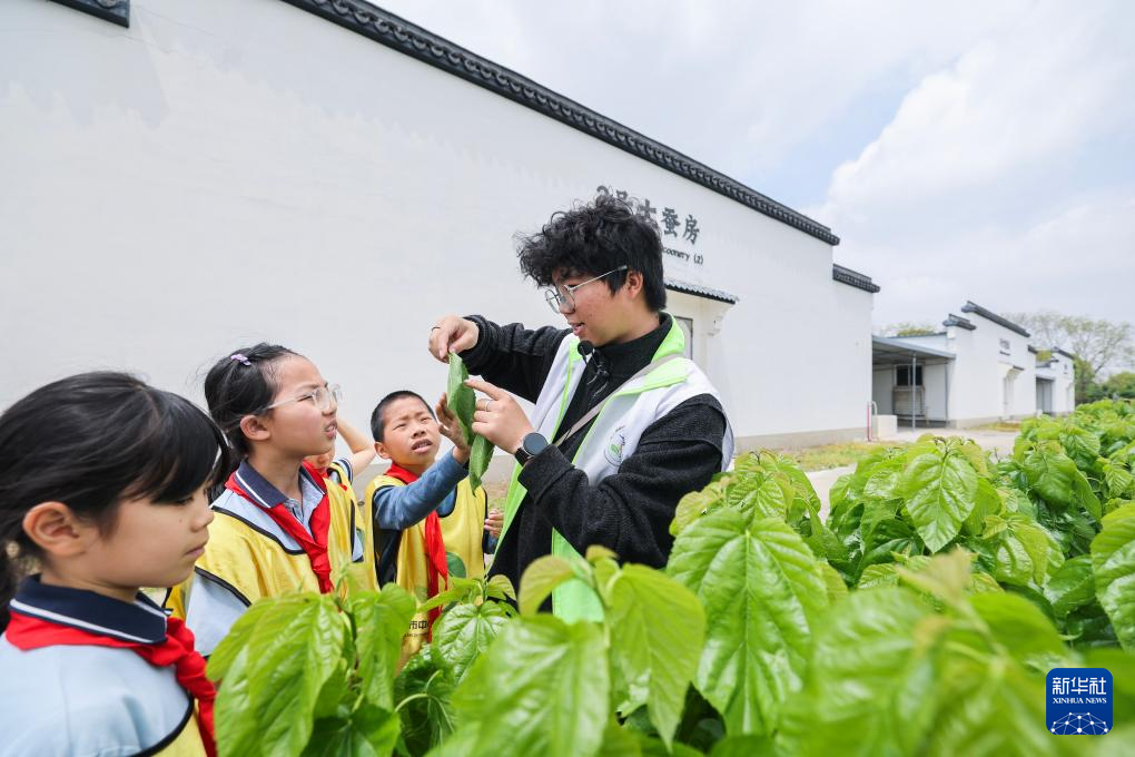 4月15日,参加研学活动的小学生来到研学实践中心蚕桑乐园。
