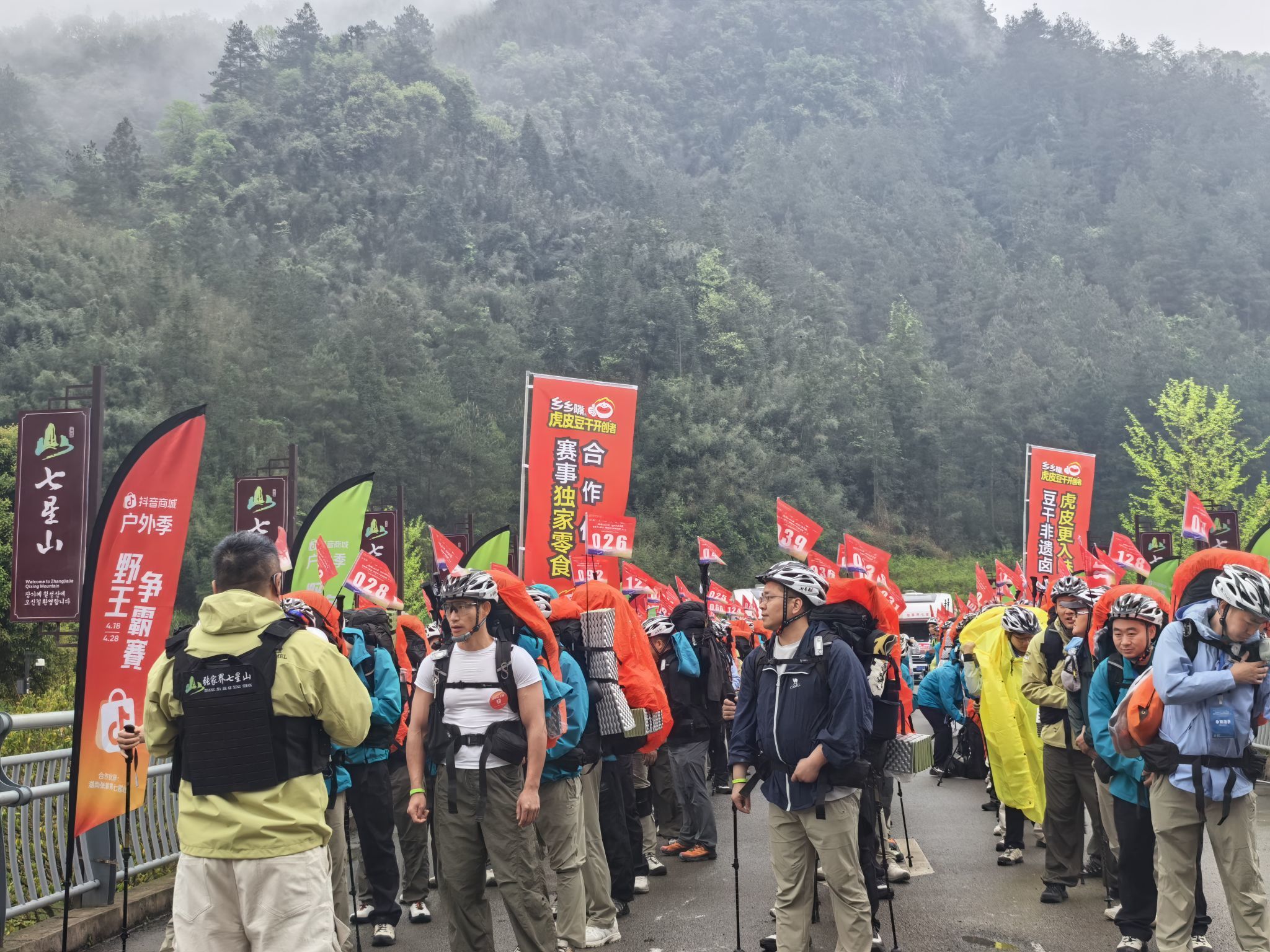 4月15日早上7点,山间云雾缭绕,下着小雨,空气里还残留着夜晚的微冷,前一晚在七星山脚下露营的135名徒步选手已经打包好了行李,有的在小摊处买早饭,有的在聊天,迫不及待想要出发了。“凌晨3点就起来了,起来擦了素颜霜和防晒霜,迫不及待想要出发了。”来自贵州的95后女选手“杰贝贝”说道。