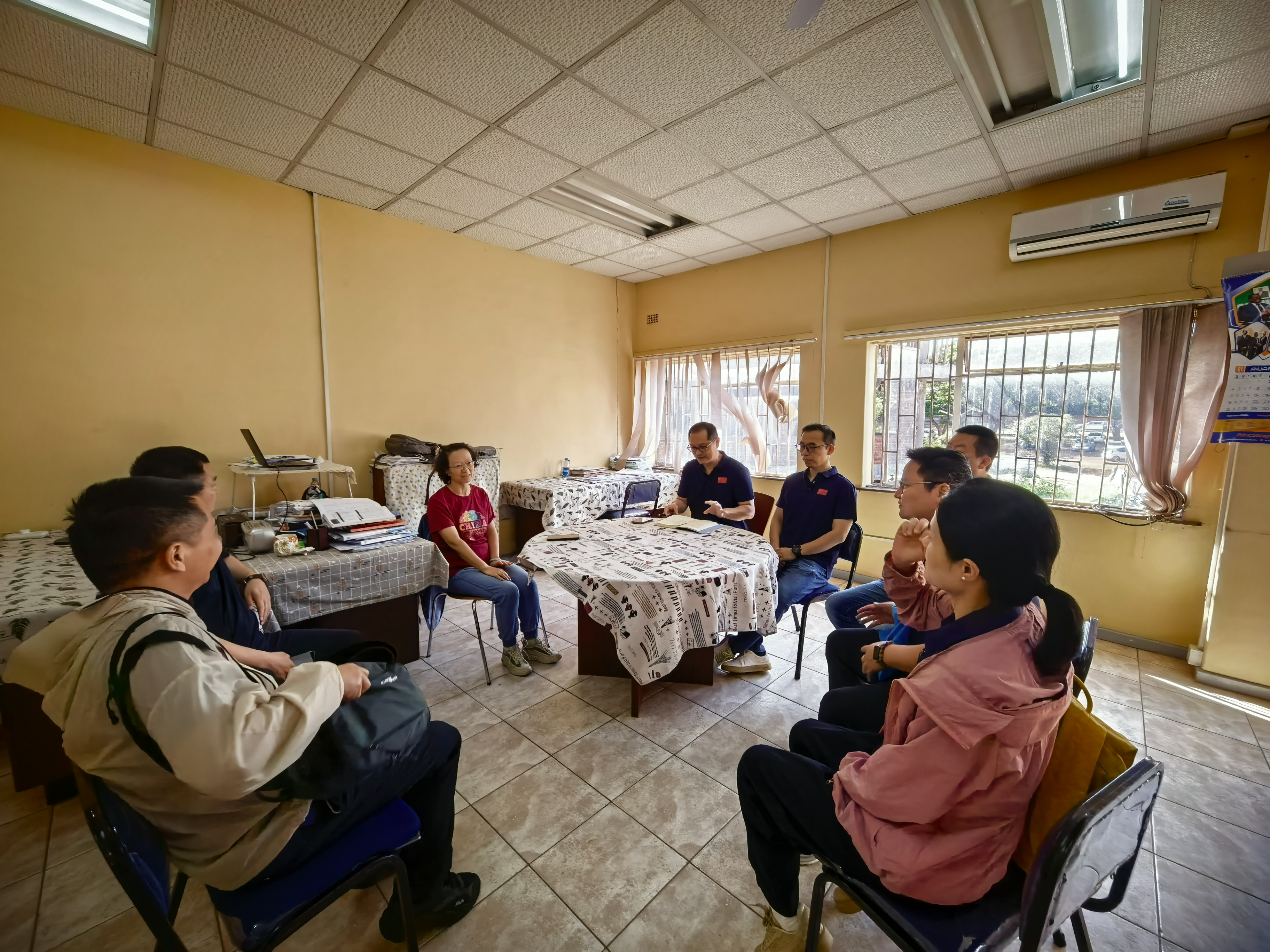 在津巴布韦大学孔子学院负责人李丽琴的陪同下,医疗队队员逐一参观了学院教学场地、文化展示区等场所,详细了解学院在中文教学、中国文化传播、中津人文交流等方面的工作开展情况及丰硕成果。双方就举办中非文明论坛系列讲座、开展医疗健康与文化融合活动等核心事宜,进行全面沟通并商讨合作细则。