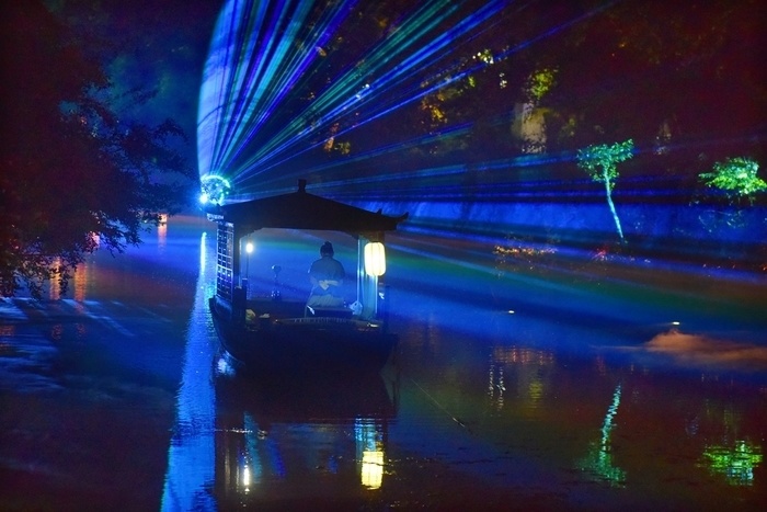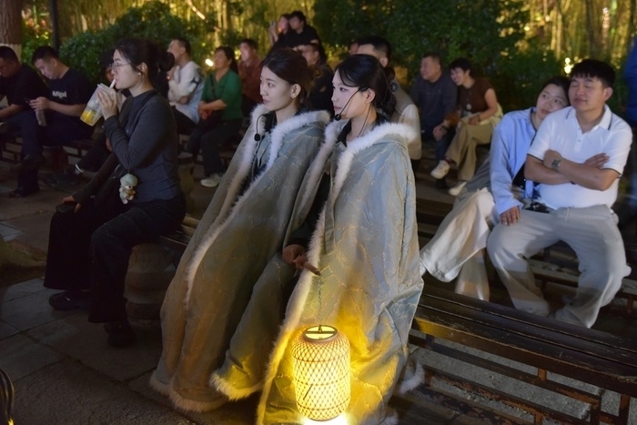 夜幕降临,迎来本次活动压轴体验——趵突泉沉浸式夜游《趵突夜画》。作为济南泉水文化创新夜游项目,《趵突夜画》自2025年10月推出以来,以“历史人物活化+沉浸式演艺”为核心,深度融合李清照、辛弃疾“二安”文化与泉水文脉,借助前沿光影科技、舞蹈、民乐、诗词吟诵、NPC互动等多元形式,打造的“可赏、可游、可听、可感”立体文化体验空间。