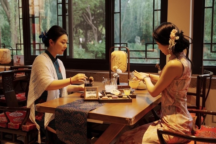 下午,巡访团步入天下第一泉风景区,开启泉水文化的沉浸式探寻之旅。达人们依次走进白雪楼、望鹤亭茶社、趵突泉VR剧场,在茶香中感受泉城慢生活,借科技手段解锁泉水文化新视角。从趵突泉行至五龙潭,沿途打卡溪亭日咖夜酒、猫的天空之城等新晋业态,在园内赏花踏青,于贤清茶馆网红倒影机位定格泉水与建筑相映成趣的美景。