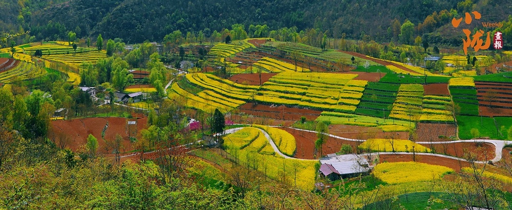 梯田如织,金黄的油菜花与新绿的田垄交错铺展,顺着山势晕染出斑斓的春日画卷。黛瓦农舍散落田间,蜿蜒小径穿梭花海,这满溢的鲜活生机,是山野间最动人的诗行。