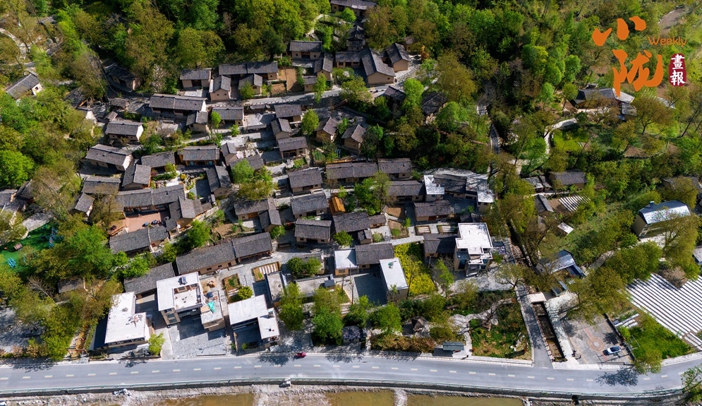 古村被绿意温柔裹住,黛瓦灰墙的屋舍错落排布,与葱郁山林相融。蜿蜒村路串起烟火人家,近旁公路延伸向远方。这方古村,在自然环抱里,默默封存着悠远岁月的印记。