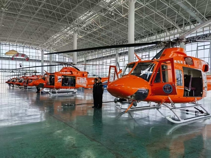 调研组详细了解济南通用航空有限公司航空应急救援力量建设、装备配置及实战效能。据悉,该公司成立于2023年,填补了济南市航空应急救援领域的空白,配备专业机组、技术人员及先进装备,可高效完成防汛抢险、物资投送、医疗转运、森林防灭火等多元应急任务,2023年8月被列入第一批市级应急救援队伍名单,成为应急抢险的“空中力量”。