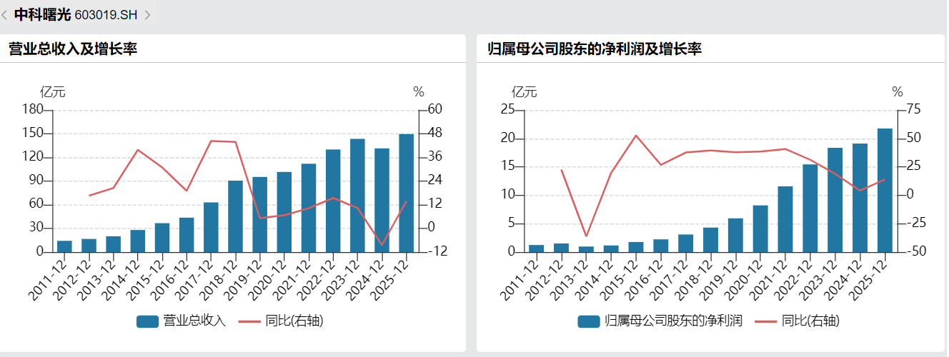 纵向来看,中科曙光2025年营收、净利增速均迎来拐点。Wind数据显示,中科曙光上市以来营收持续增长,2022年及以前净利增速基本维持在30%左右,2022年开始增速有所放缓,2025年增速实现快速回升。