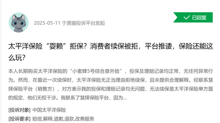 黑猫投诉:客服隐瞒关键信息致拒赔