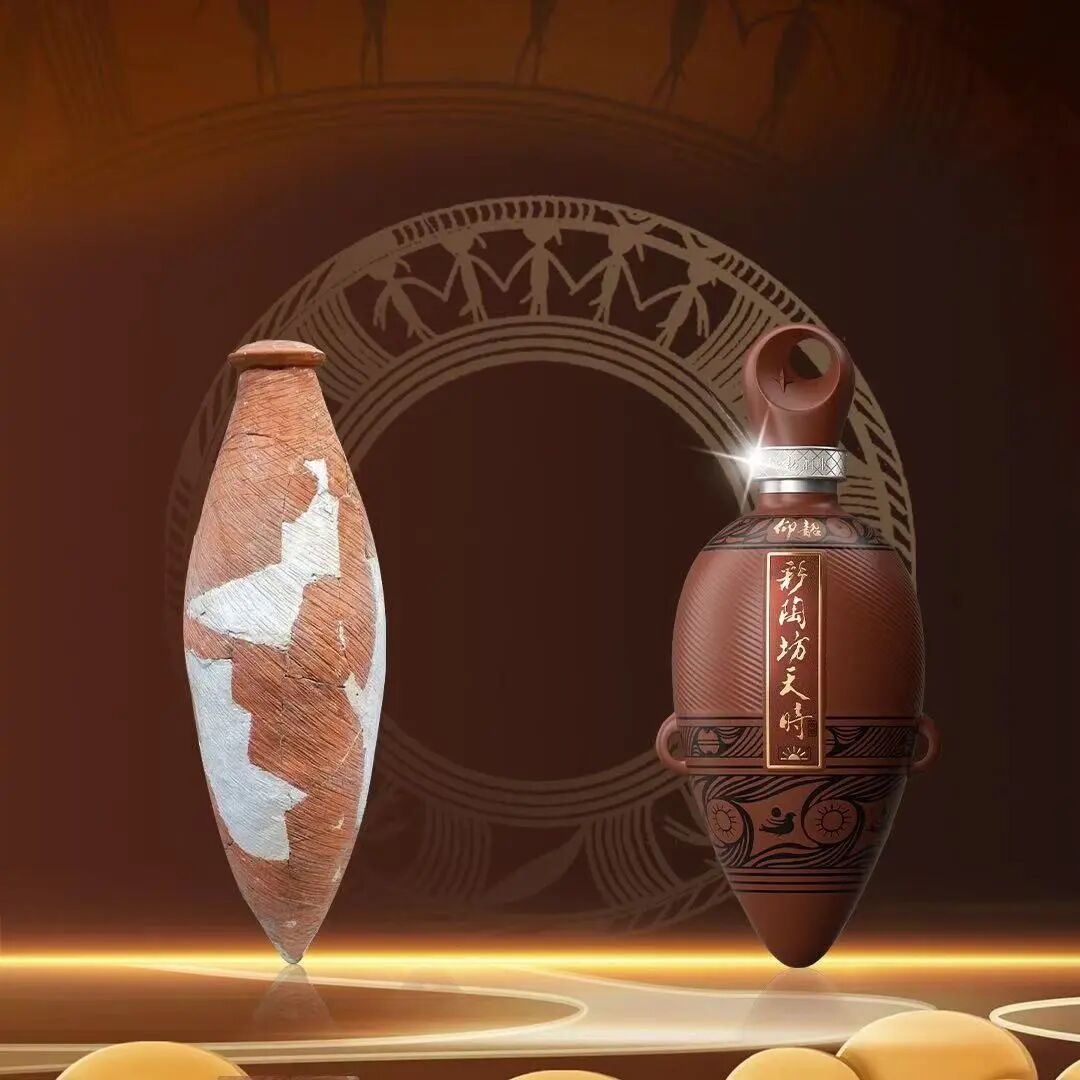 仰韶酒业深谙此道,将“文化”视为品牌的最高形态。仰韶彩陶坊的设计灵感,直接源于仰韶文化的标志性器物——“小口尖底瓶”与“鱼纹葫芦瓶”。瓶身之上,太阳纹、鱼纹等彩陶经典纹饰被巧妙复刻,让沉睡七千年的文物“活”了起来,成为现代人可感可知的文化符号。这并非简单的形制模仿,而是对“天人合一”哲学内核的当代诠释。