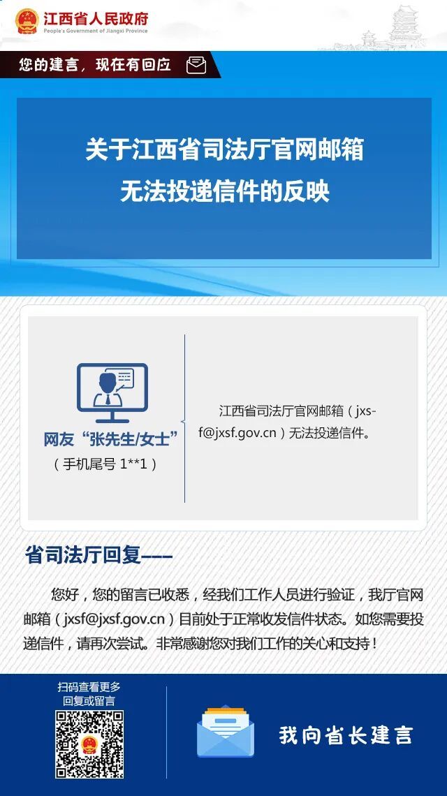 反映:江西省司法厅官网邮箱无法投递信件