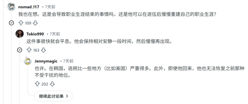 韩国国内对类似运动员、艺人优待制度一直颇有争议。一部分民众觉得不公平,军方也因入伍人数下降想要找机会废除“艺术体育要员”,现在“高收入电竞选手在拿到免兵役特权后,竟然还不服国税厅的追缴判决”正好可以拿来做文章。在Ruler税务风波发酵后,各方都在猜测,韩国政府会因此收紧对电竞金牌选手的公益兵特权。