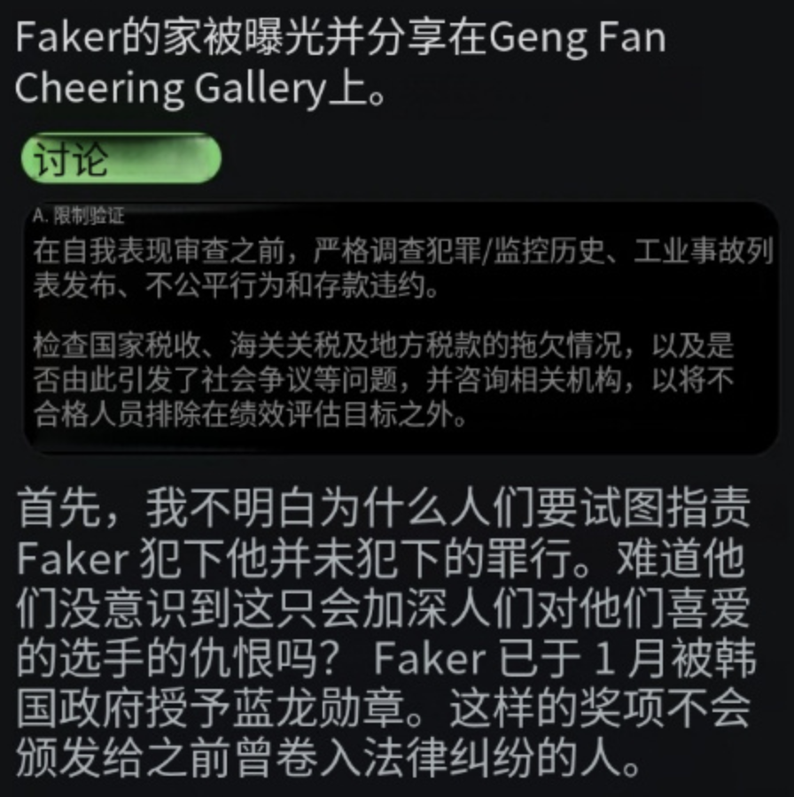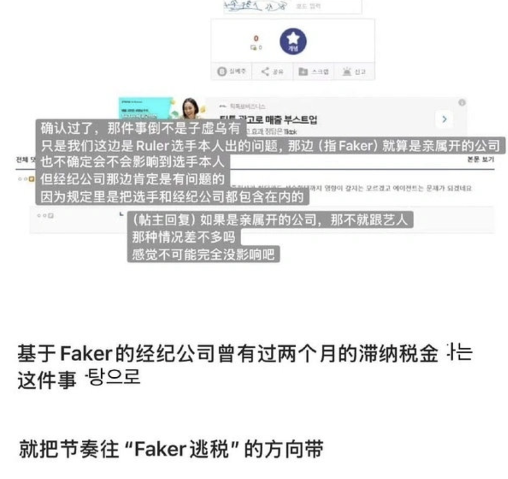 于是在论坛里,有极端GEN粉丝发帖提议,如果将大家的注意力转移到其他选手的负面新闻上,就可以围魏救赵了,于是他们选择了Faker,因为Faker旗下的资产曾经也出现过税款问题,用“Faker逃税”盖过“Ruler逃税”就万事大吉了。