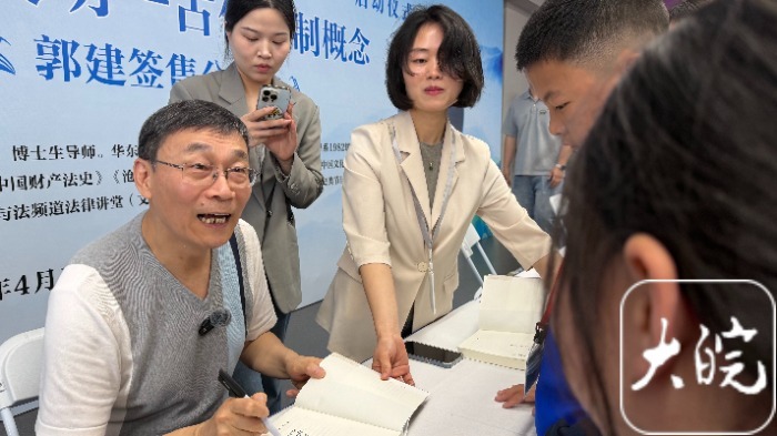 大皖新闻讯 4月18日上午,由省委宣传部、省直机关工委主办的2026年安徽省暨省直机关“全民阅读活动周”启动活动在骆岗公园举行。作为当天上午系列活动的重头戏之一,知名作家签售活动现场,特别邀请到复旦大学法学院教授郭建,他携两本新作与现场观众互动交流。