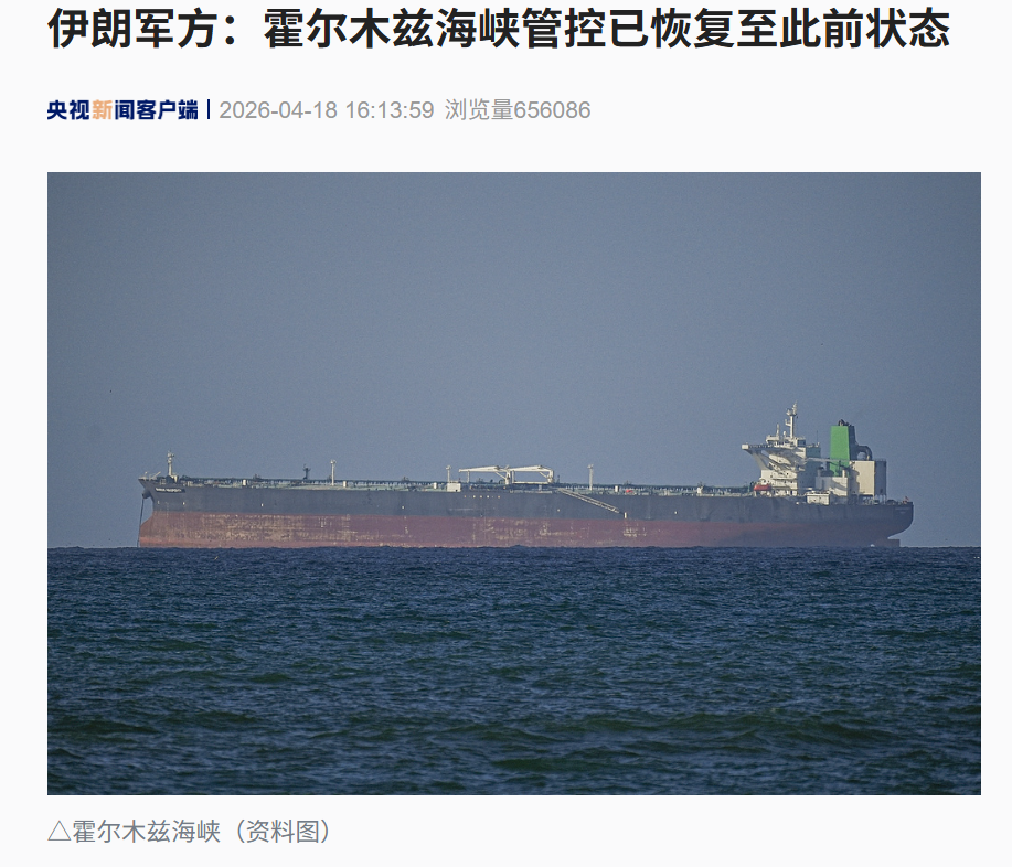 据新华社援引伊朗媒体18日报道,伊朗军方发言人称,因美国“屡次违背承诺”,对霍尔木兹海峡的控制权已恢复到以前的状态,这一海峡目前处于伊朗武装部队的严格管理和控制之下。