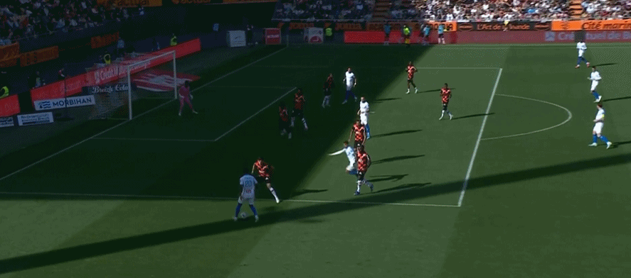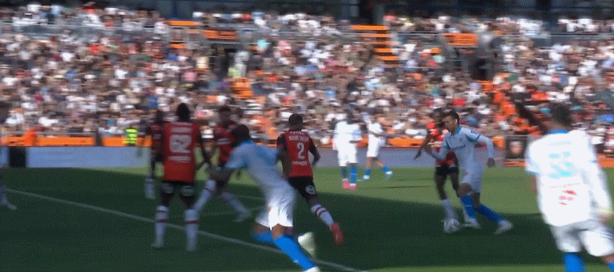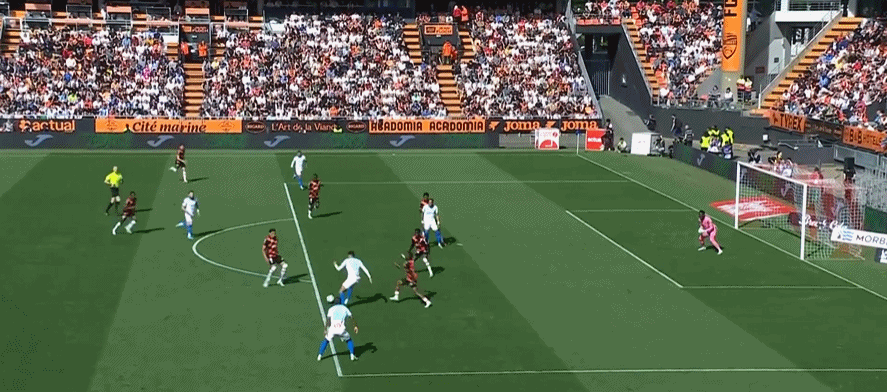 第58分钟,班巴-迪昂禁区内挑射攻破旧主球门!洛里昂2-0